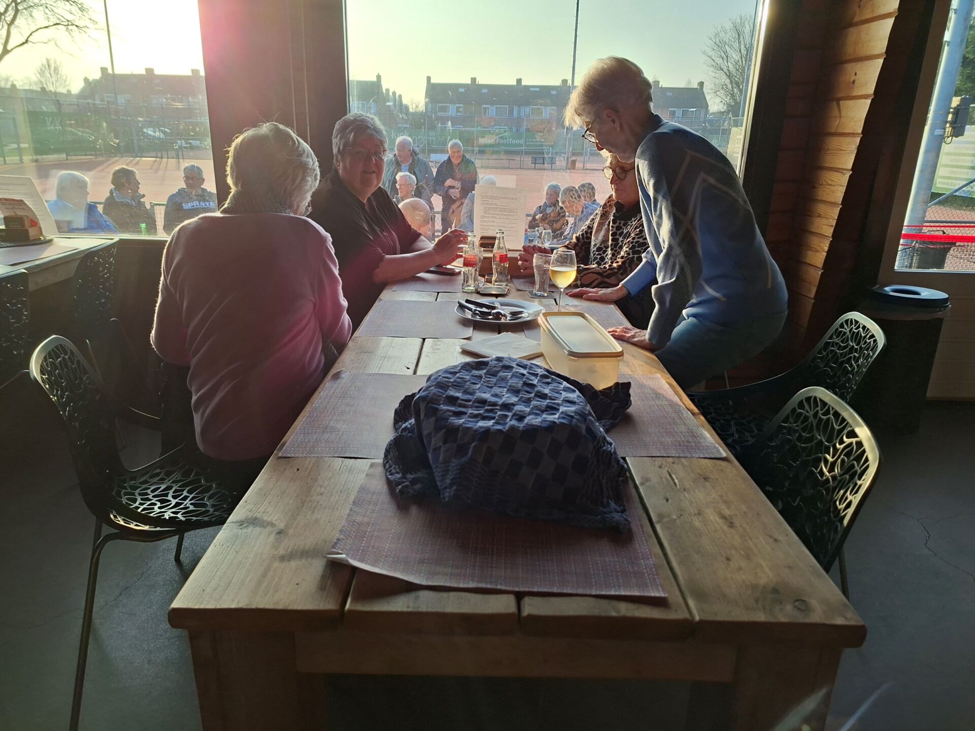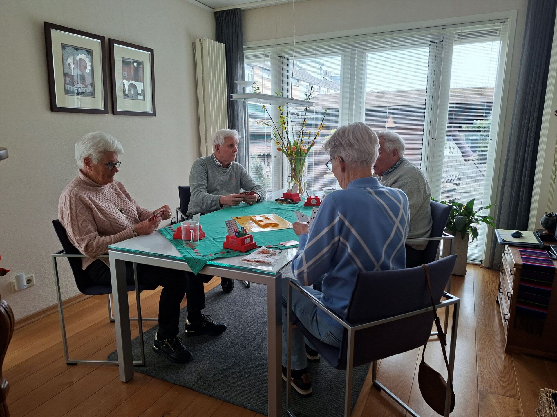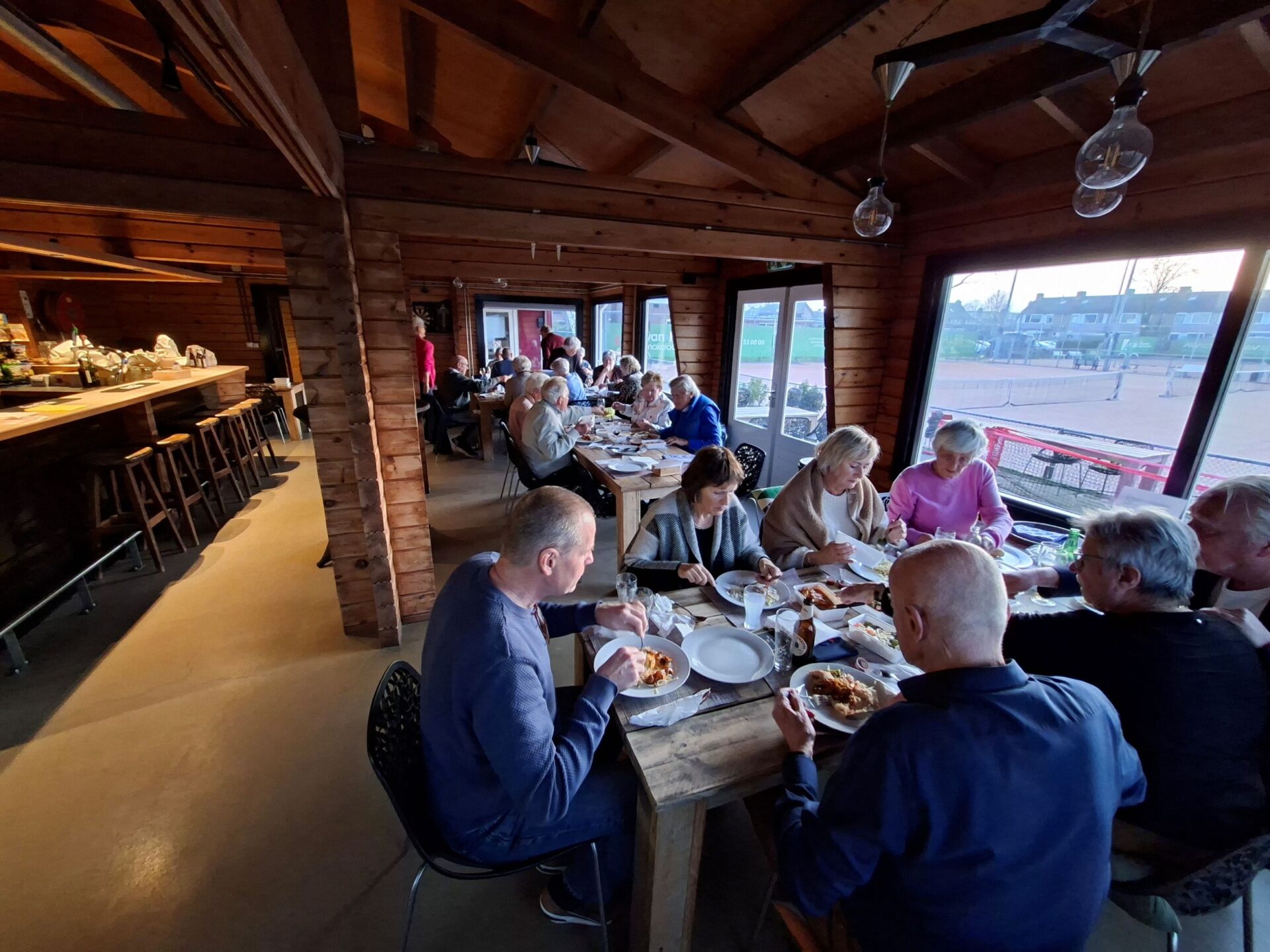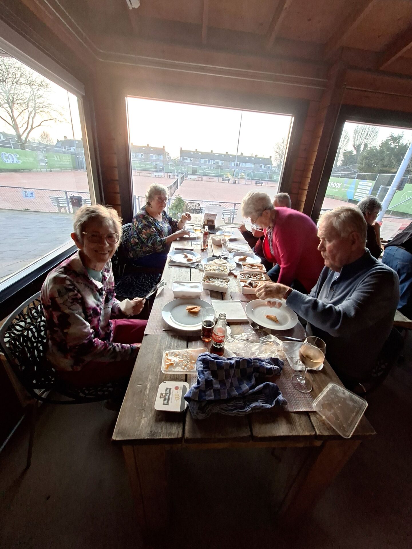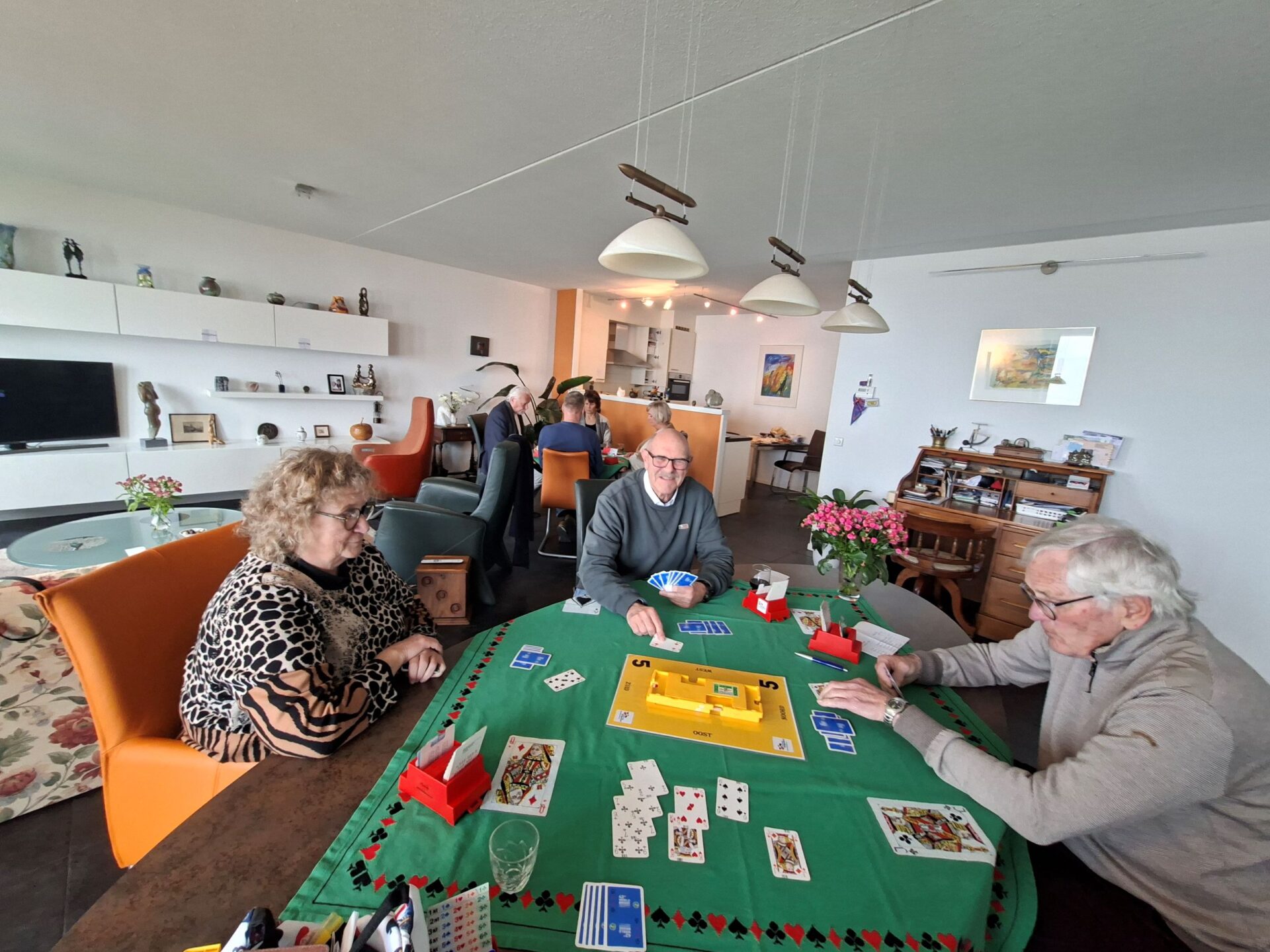 In 1986 is Ellie Klapwijk samen met haar Wim deze jaarlijkse traditie begonnen. Sinds 1986 is het hooguit vijf maal niet doorgegaan. We zijn tenslotte een gezelligheids vereniging en daar hoort ook wat anders bij als alleen elkaar kort op een clubavond zien bij.Dus organiseren we jaarlijks een huisjes 🏡weekend (ergens in Nederland met enkele gehuurde huisjes 3 dagen weg) een hotel 🏨weekend (ergens in oktober 3 dagen samen naar een hotel ergens in Nederland) en de Pendeldrive. Dit alles komt uit de koker van de famillie Klapwijk en is al ruim 40 jaar succesvol en tekent de samenhorigheid van onze vereniging. Sommige leden kom je op de clubavond niet tegen omdat ze in een andere lijn spelen of op een ander speelmoment. We spelen natuurlijk op de donderdag en de dinsdag. Een mooie gelegenheid om elkaar op deze Pendeldrive weer een te zien en bij te kletsen. Dus gezellig van huis naar huis een dagje kaarten, liefs onder het genot van een heerlijk zonnetje🌞. Sommige op de fiets en andere met de auto en heel veel kletsen onder het kaarten, het gaat om de dag en niet om het resultaat. In de loop der jaren hebben we vele dorpen bezocht. Vaak gaan we ook naar Krimpen a/d Lek en Krimpen aan de IJssel. Dit is afhankelijk van het aantal deelnemers en ook van het aantal tafels die de gastheer/vrouw kunnen plaatsen in hun huis. De dag start op de Tennis vereniging met koffie ☕en iets lekkers🍪. Daarna gaan we volgens ons loopbriefje naar het huis waar de tafel staat waaraan je speelt. We spelen in elk huis een paar spellen en soms speel je twee maal in een huis. Na het einde van de laatste ronde verzamelen we allemaal weer in het clubhuis van de Tennis om daar gezellig wat te drinken en samen de dag af te sluiten aan lange tafels met een heerlijke maaltijd.
