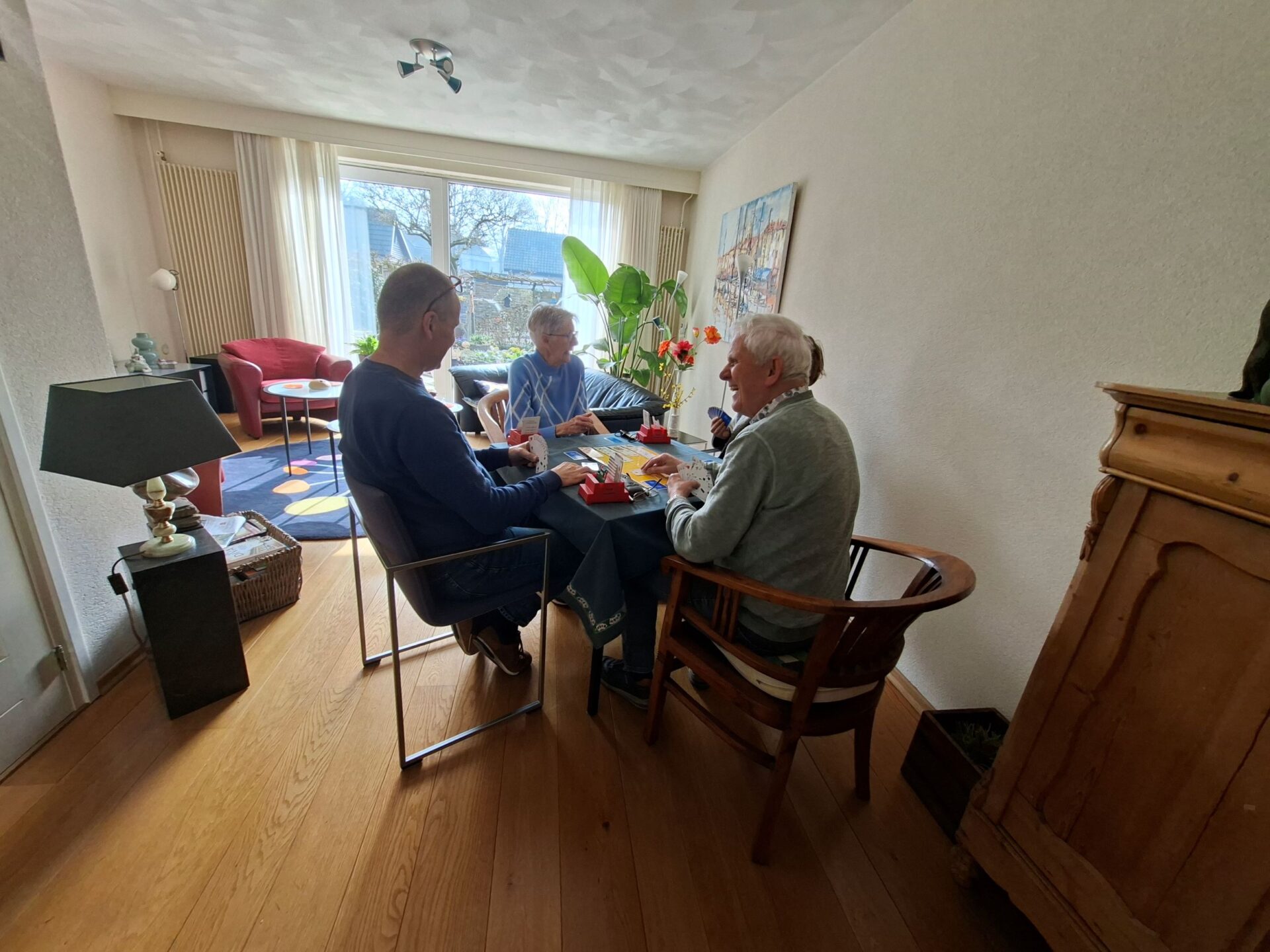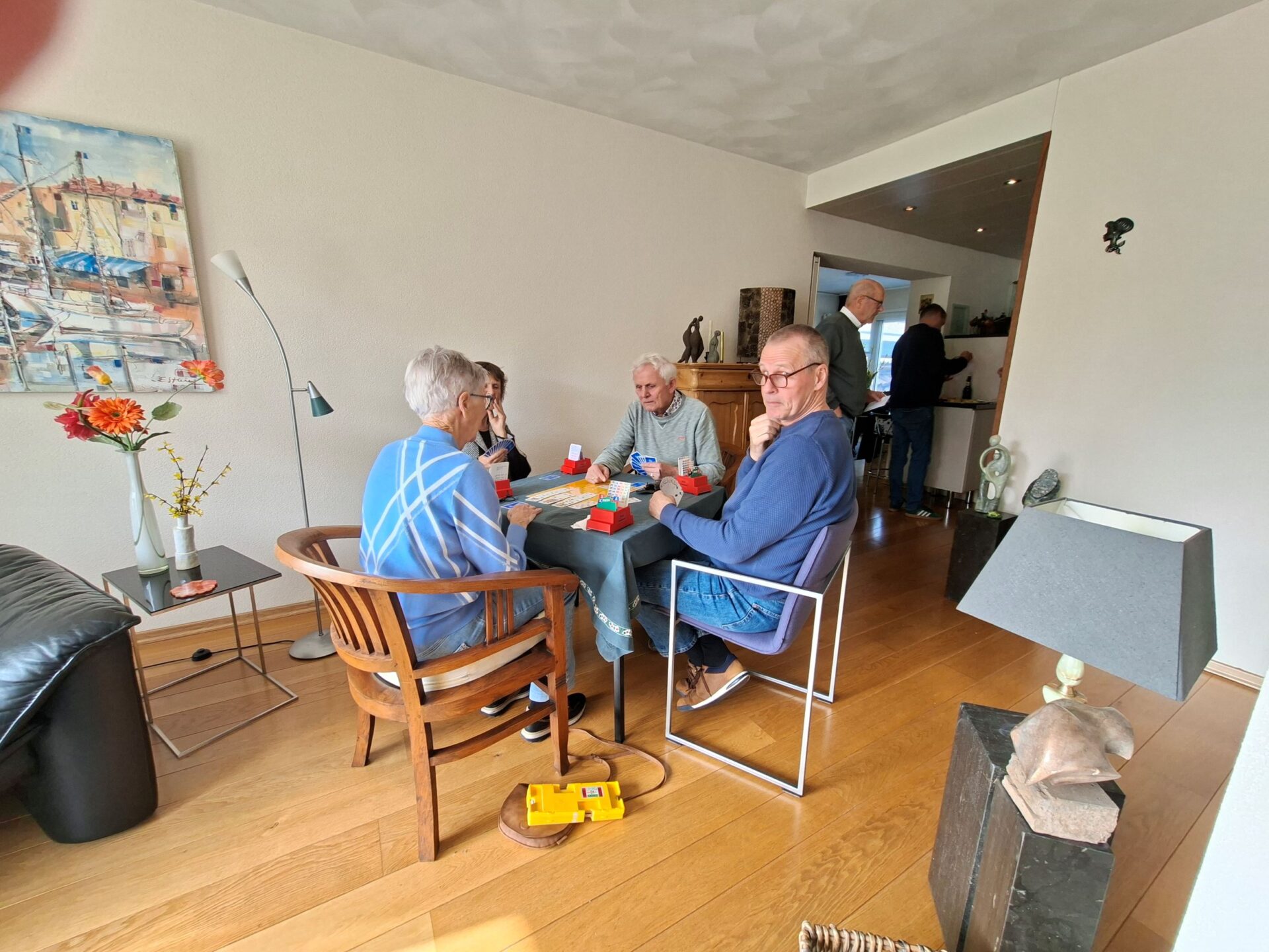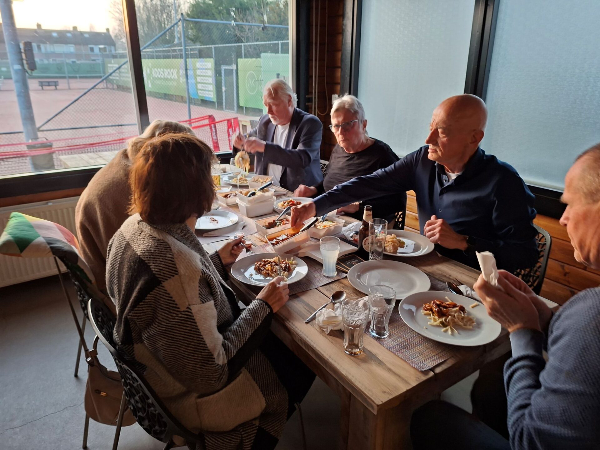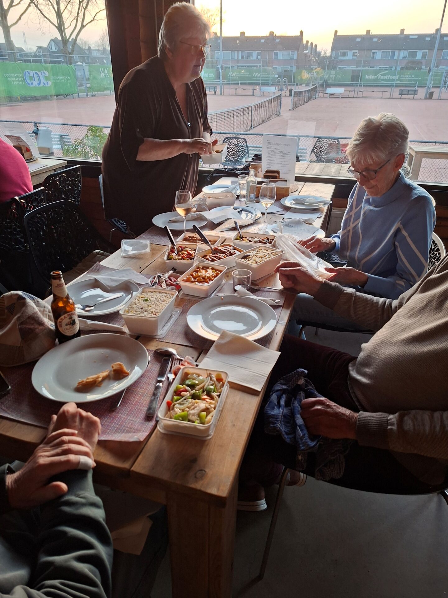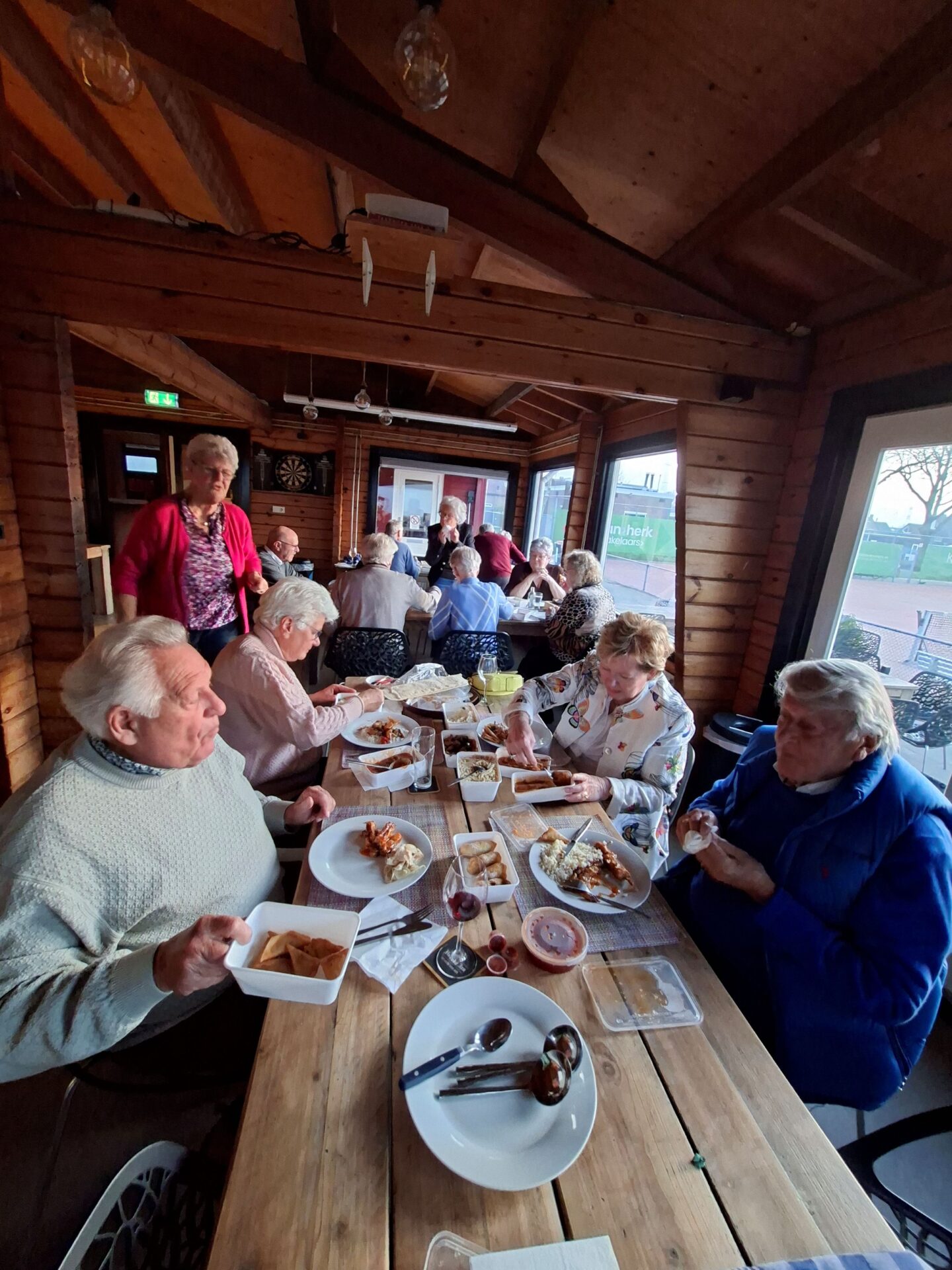 In 1986 is Ellie Klapwijk samen met haar Wim deze jaarlijkse traditie begonnen. Sinds 1986 is het hooguit vijf maal niet doorgegaan. We zijn tenslotte een gezelligheids vereniging en daar hoort ook wat anders bij als alleen elkaar kort op een clubavond zien bij.Dus organiseren we jaarlijks een huisjes 🏡weekend (ergens in Nederland met enkele gehuurde huisjes 3 dagen weg) een hotel 🏨weekend (ergens in oktober 3 dagen samen naar een hotel ergens in Nederland) en de Pendeldrive. Dit alles komt uit de koker van de famillie Klapwijk en is al ruim 40 jaar succesvol en tekent de samenhorigheid van onze vereniging. Sommige leden kom je op de clubavond niet tegen omdat ze in een andere lijn spelen of op een ander speelmoment. We spelen natuurlijk op de donderdag en de dinsdag. Een mooie gelegenheid om elkaar op deze Pendeldrive weer een te zien en bij te kletsen. Dus gezellig van huis naar huis een dagje kaarten, liefs onder het genot van een heerlijk zonnetje🌞. Sommige op de fiets en andere met de auto en heel veel kletsen onder het kaarten, het gaat om de dag en niet om het resultaat. In de loop der jaren hebben we vele dorpen bezocht. Vaak gaan we ook naar Krimpen a/d Lek en Krimpen aan de IJssel. Dit is afhankelijk van het aantal deelnemers en ook van het aantal tafels die de gastheer/vrouw kunnen plaatsen in hun huis. De dag start op de Tennis vereniging met koffie ☕en iets lekkers🍪. Daarna gaan we volgens ons loopbriefje naar het huis waar de tafel staat waaraan je speelt. We spelen in elk huis een paar spellen en soms speel je twee maal in een huis. Na het einde van de laatste ronde verzamelen we allemaal weer in het clubhuis van de Tennis om daar gezellig wat te drinken en samen de dag af te sluiten aan lange tafels met een heerlijke maaltijd.